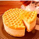 表面に蜂蜜の巣みたいなビスケットがのっていてインパクトがあるかわいいケーキです。
