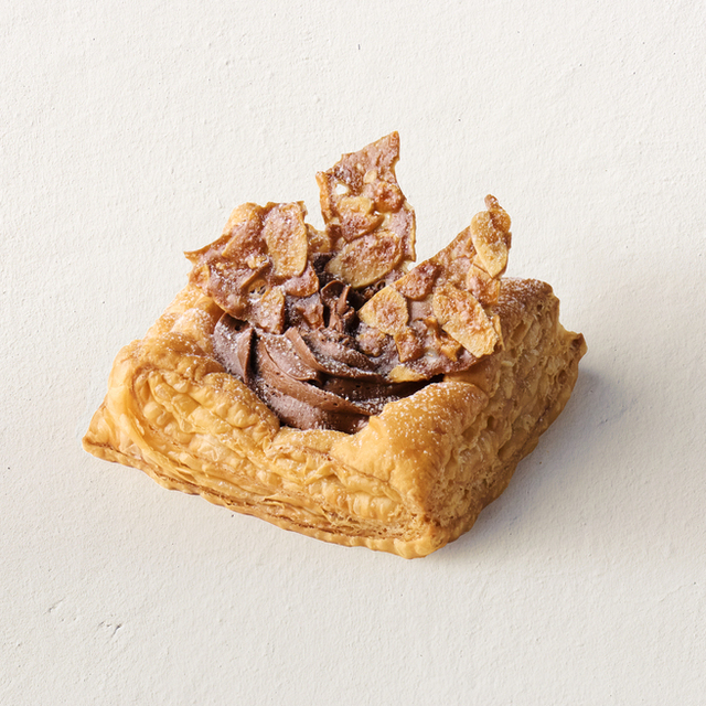 通常のアップルパイは144層ですがピーチプリンパイは729層にし冷やしてもサクサク食感を楽しめるようにしてあります。