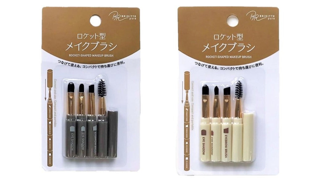 アイシャドウブラシ大・アイシャドウ小・アイブロウブラシ・アイブロウスクリューの4種類がロケットエンピツみたいになっているので使いたいブラシを先頭にして使うことができます。