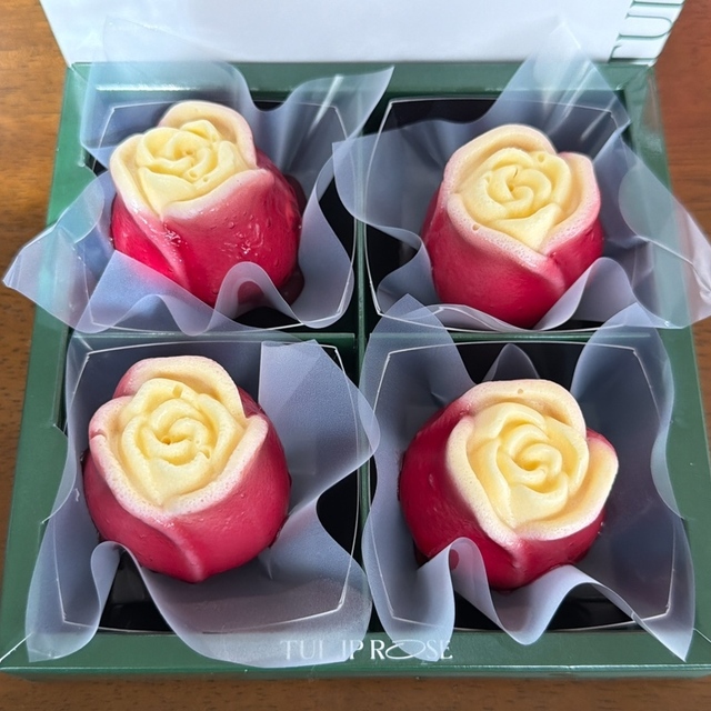 やさしい甘さのピスタチオあんと苺の果汁が合わさった上品な味わいを楽しめます。