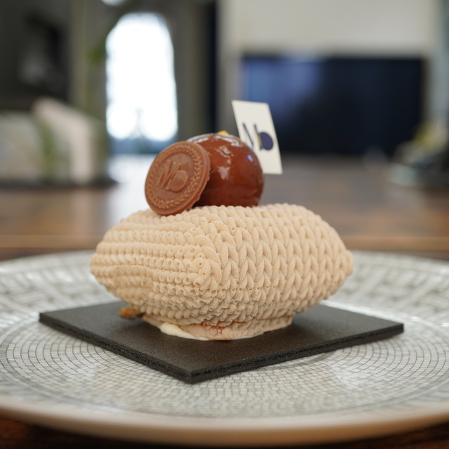 設計ソフトでデザインしたケーキが話題のお店の座布団をイメージしたユニークな形のモンブランです。