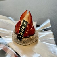 黒い大福の上にモンブランがのっている進化系の大福です。