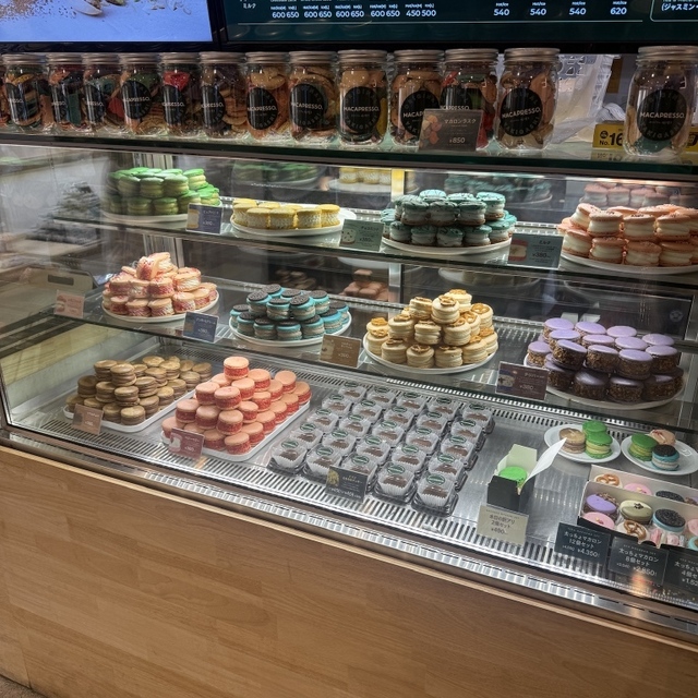 甘いミルク氷にマンゴー・ミルクアイス・マンゴーとあんずの果肉をたっぷり使ったマンゴーソース・お店自慢のマカロンがトッピングしてあります。