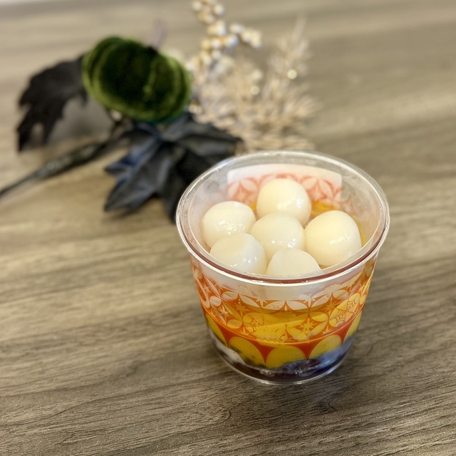 黒蜜とこしあんを混ぜたゼリーが上にのったくず餅のもちもち食感とゼリーのプルプル食感を楽しめます。